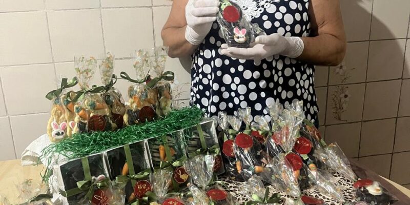 “Os doces são produzidos com muito carinho, os biscoitos são bolachinhas amanteigadas que se derretem na boca, com um toque de Páscoa, com chocolates em forma de cenoura e coelho em cima”, contou Mara.